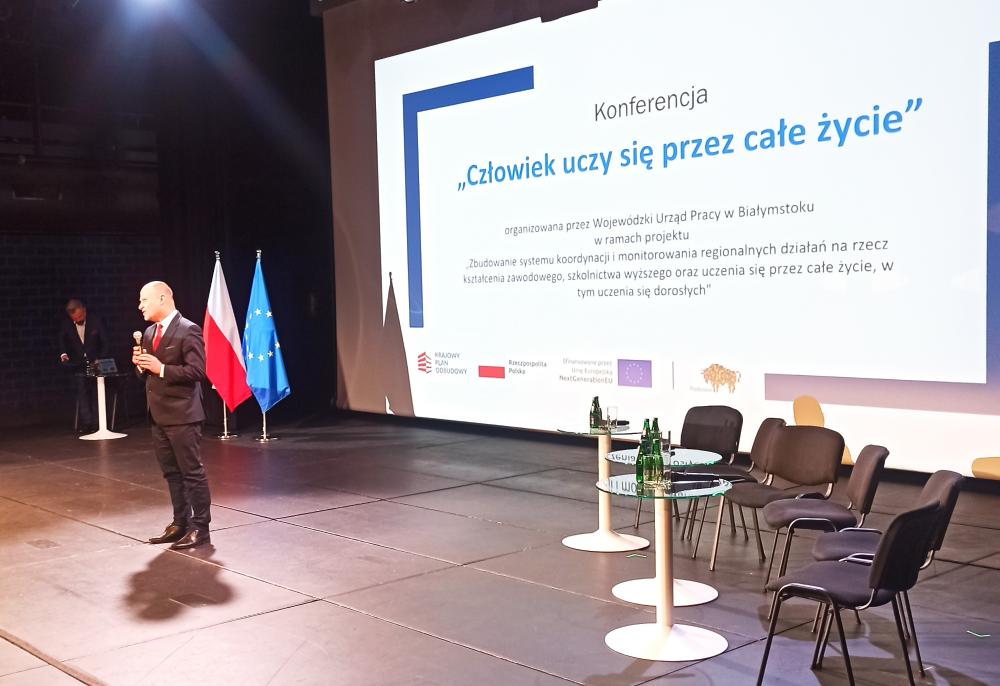 Konferencja „Człowiek uczy się przez całe życie” odbyła się 11 grudnia 2024 r. w ramach projektu koordynującego działania na rzecz kształcenia zawodowego oraz uczenia się dorosłych, wspieranego przez Krajowy Plan Odbudowy. Celem konferencji było przedstawienie założeń, zadań oraz celów projektu, jak również działań Wojewódzkiego Zespołu Koordynacji (WZK). W wydarzeniu uczestniczyli przedstawiciele Urzędu Marszałkowskiego Województwa Podlaskiego, uniwersytetów oraz Centrów Edukacji Nauczycieli, a także dyrektorzy urzędów pracy, lokalni samorządowcy i przedsiębiorcy.