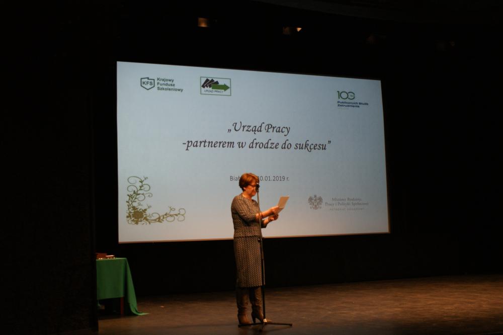 Konferencja rozpoczęła się uroczystym powitaniem zgromadzonych gości przez Panią Janinę Mironowicz – Dyrektora Wojewódzkiego Urzędu Pracy w Białymstoku.